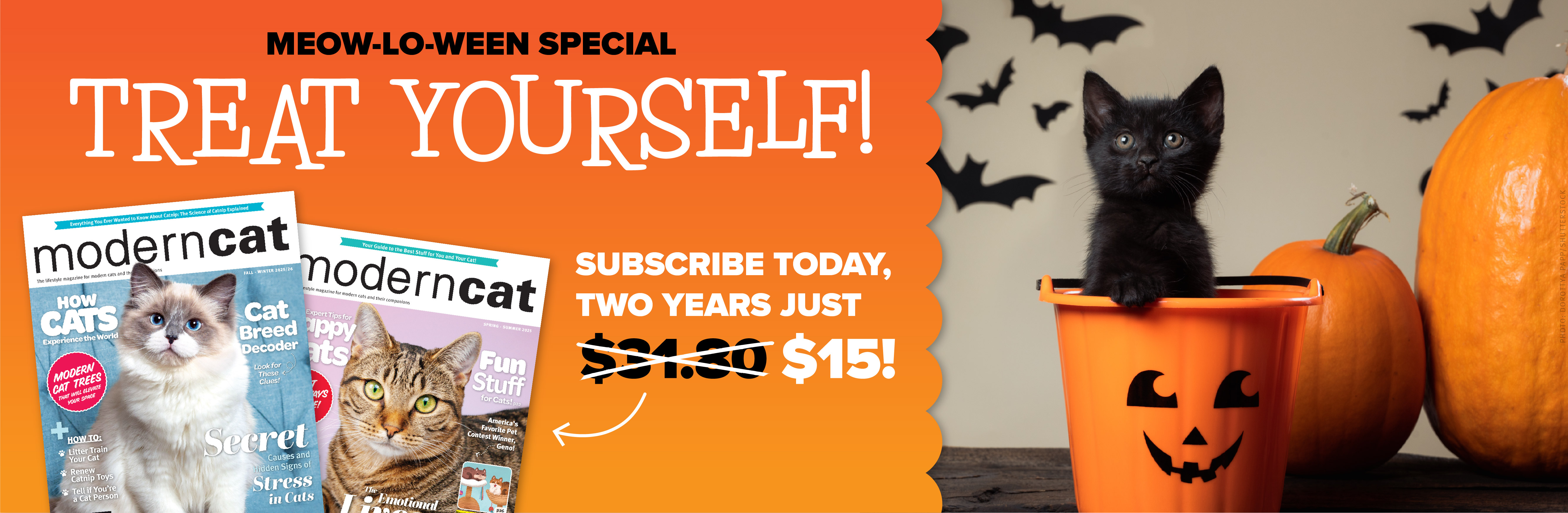 Automatic Renewal: Modern Cat magazine is published two times per year. Continuous Service Program: I understand that unless I tell you otherwise, I will receive uninterrupted service and access; my subscription(s) will be automatically renewed at the end of each subscription term, at the rate(s) then in effect. I authorize you to fulfill my subscription(s) and charge the credit/debit card if provided or send me a bill if not. I won’t be bothered with any renewal notices, instead, I will receive a clearly marked reminder notice with the then-current rate(s) about 30 days prior to charging my credit/debit card or receiving a bill. I may opt-out of the automatic renewal at any time by contacting customer service referenced below and receive a refund for all undelivered issues. To reach the Customer Service Dept, please email subscriptions@moderncat.com or call 1-800-417-6289. Subscribers: If the Post Office alerts us that your magazine is undeliverable, we have no further obligation unless we receive a corrected address within one year. All orders subject to approval. Standard Canada and US pricing: 2yrs/$18, 3yrs/$25 Standard pricing outside of North America: 2yrs/$45, 3yrs/$85. Prices are subject to applicable sales tax. Frequency of all magazines subject to change without notice. Double issues may be published, which count as 2 issues. We reserve the right to substitute gifts of equal or greater value. Applicable sales tax will be added. Modern Cat magazine’s cover price is $7.95 and publishes semi-annually, except when future combined issues are published that count as two issues as indicated on the issue’s cover. Refund Policy To cancel your subscription, please email subscriptions@moderndogmagazine.com or call 1.800.417.6289. A refund will be issued for all the remaining copies that haven’t been mailed at the time of the cancellation.